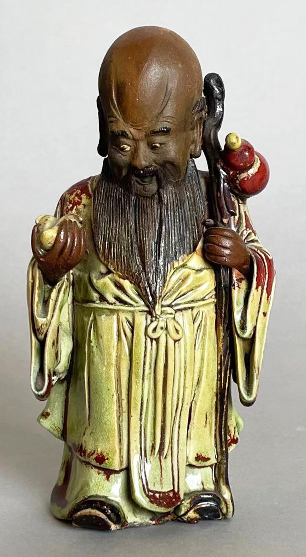 石榴紅釉壽星 無款 清代 God of Longevity in Pomegranate Red glaze No mark Qing dynasty H 17.5, W 9, D 6 cm
