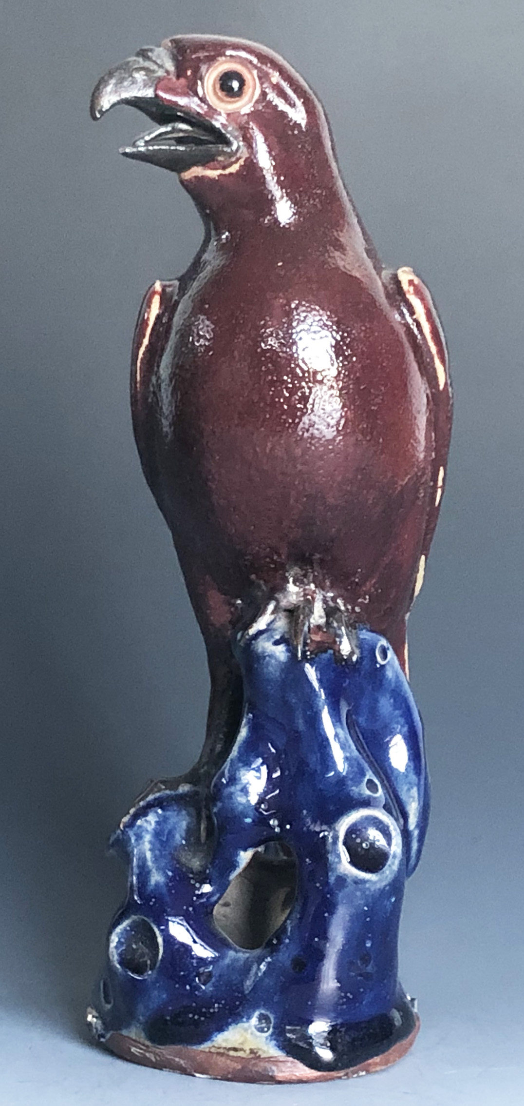 紅鷹立藍石 清 無款 Red falcon on blue rock Qing dynasty No mark H 23 cm