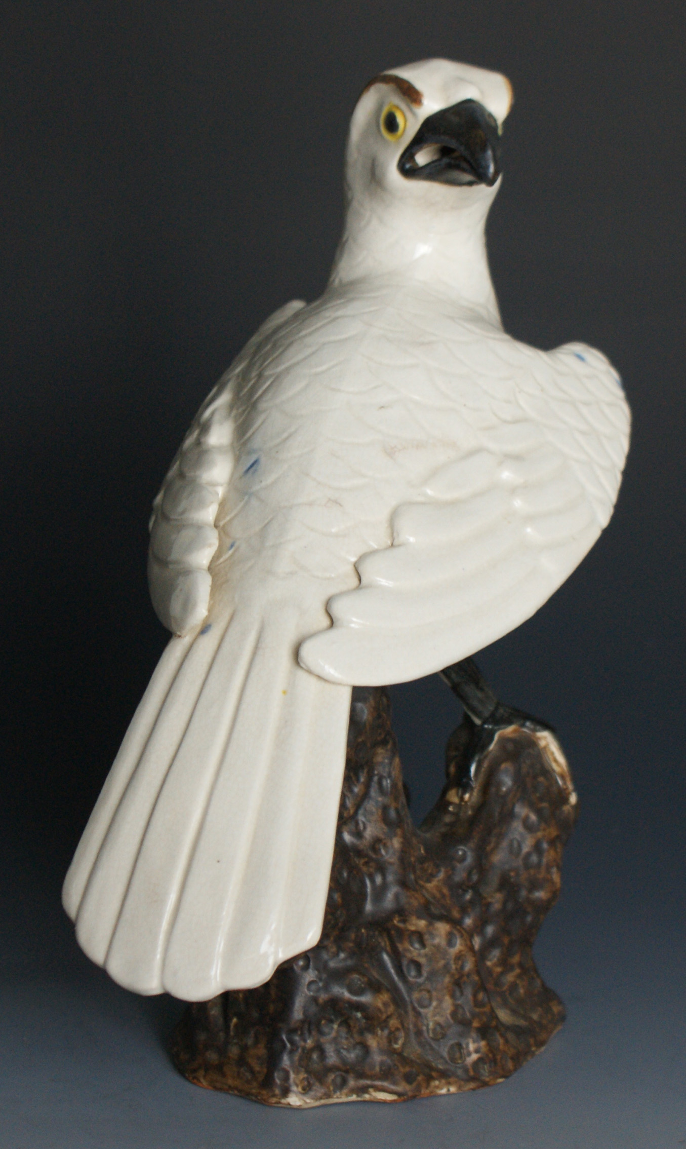 白釉企石鷹 清代晚期 無款 White Glazed Falcon Perched on rock Late Qing dynasty No mark H 23 cm