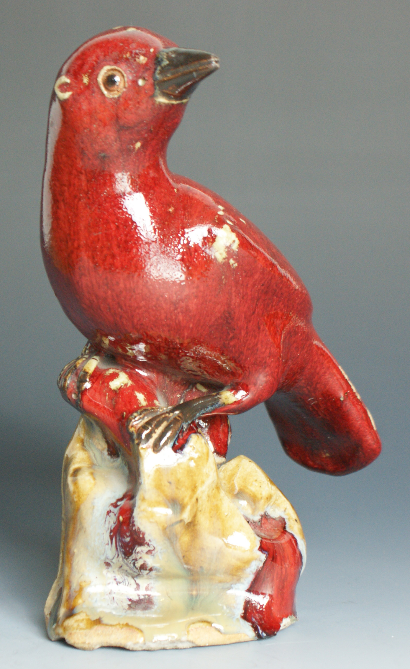 Red Glazed bird on rock