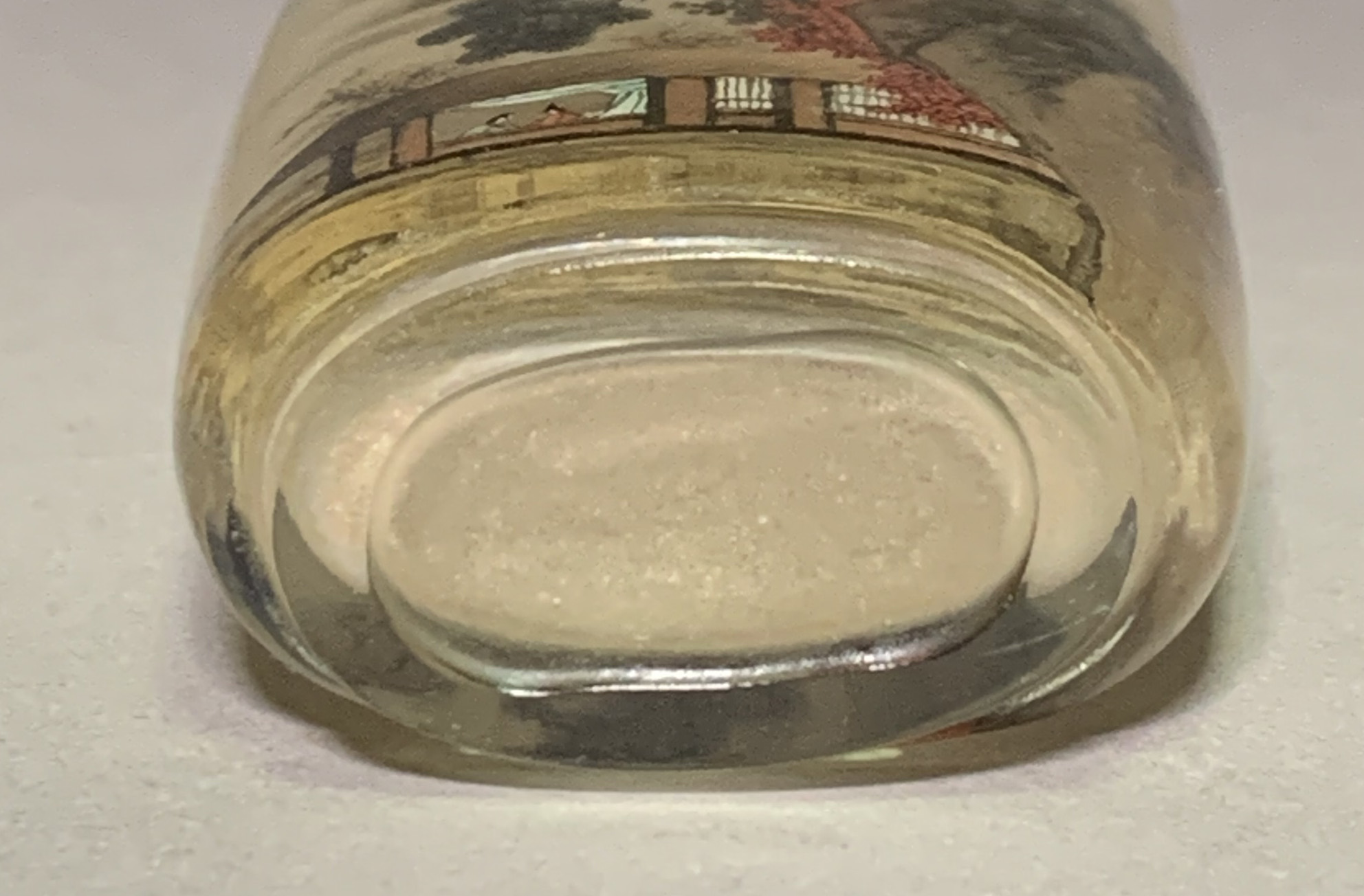 玻璃內繪秋山圖風景壺 佚名, 甲子年秋(1984)作 A glass bottle inside-painted with a continuous landscape in Autumn of 1984. Unknown artist.