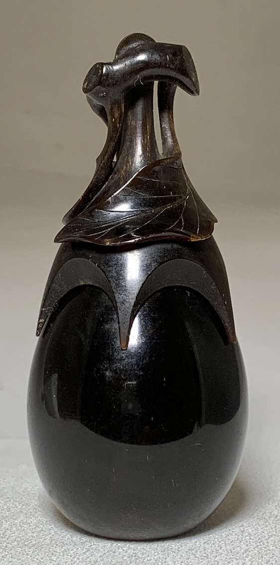 牛角雕茄瓜壺 十九世紀 A horn snuff bottle carved in the form of an eggplant 19th century