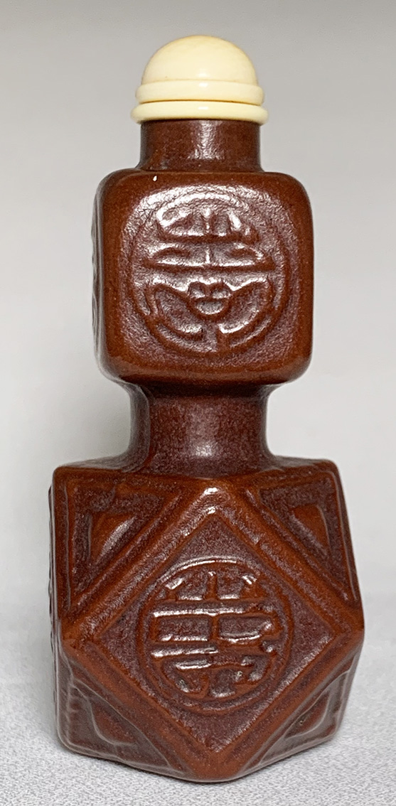½d¼Ò¸¬Äª¹Ø¦r¯¾·Ï³ý °®¶©½àª±©³´Ú ¤Q¤E¥@¬ö A gourd snuff bottle moulded with Shou characters and Qianlong Shanwoon mark on the base 19th century (probably made from old mould)
