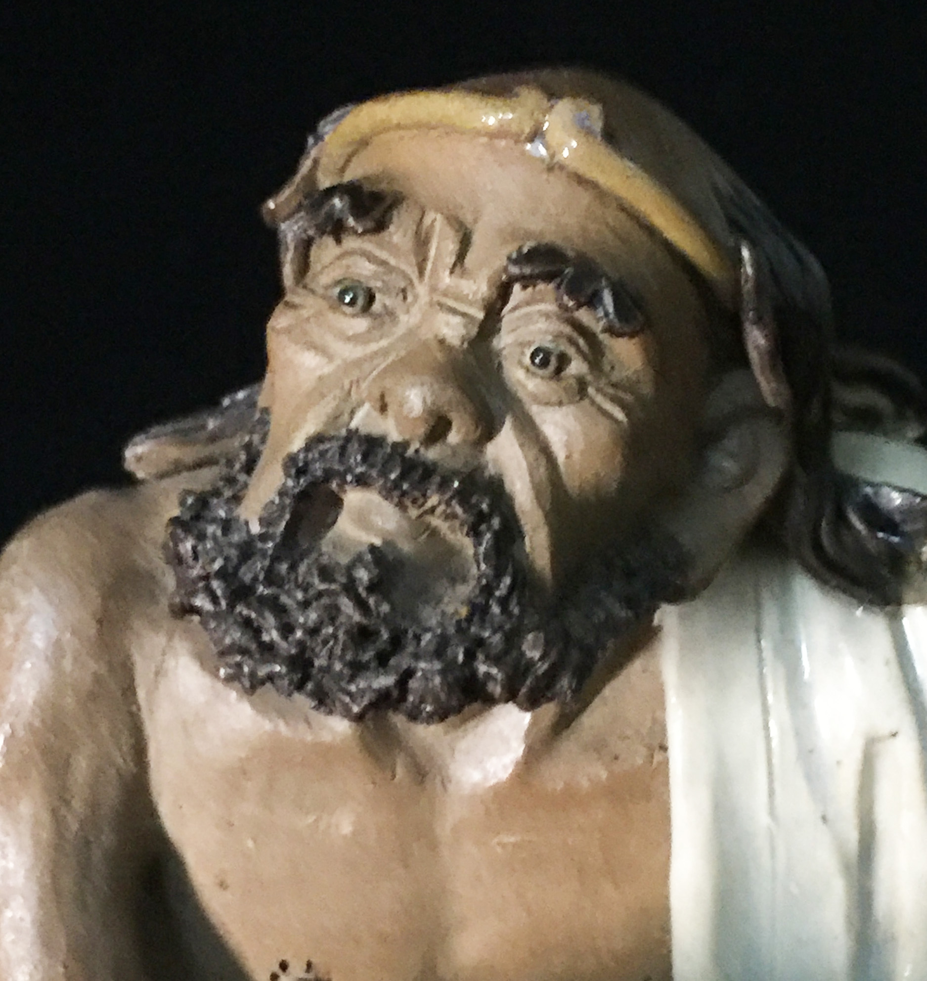 葫蘆李鐵拐 九一年石灣民間藝人馮國器(馮南)原作品 高16 cm Li Tieguai with a gourd 1991 Seal and incised mark by Feng Guoqi. Original works.