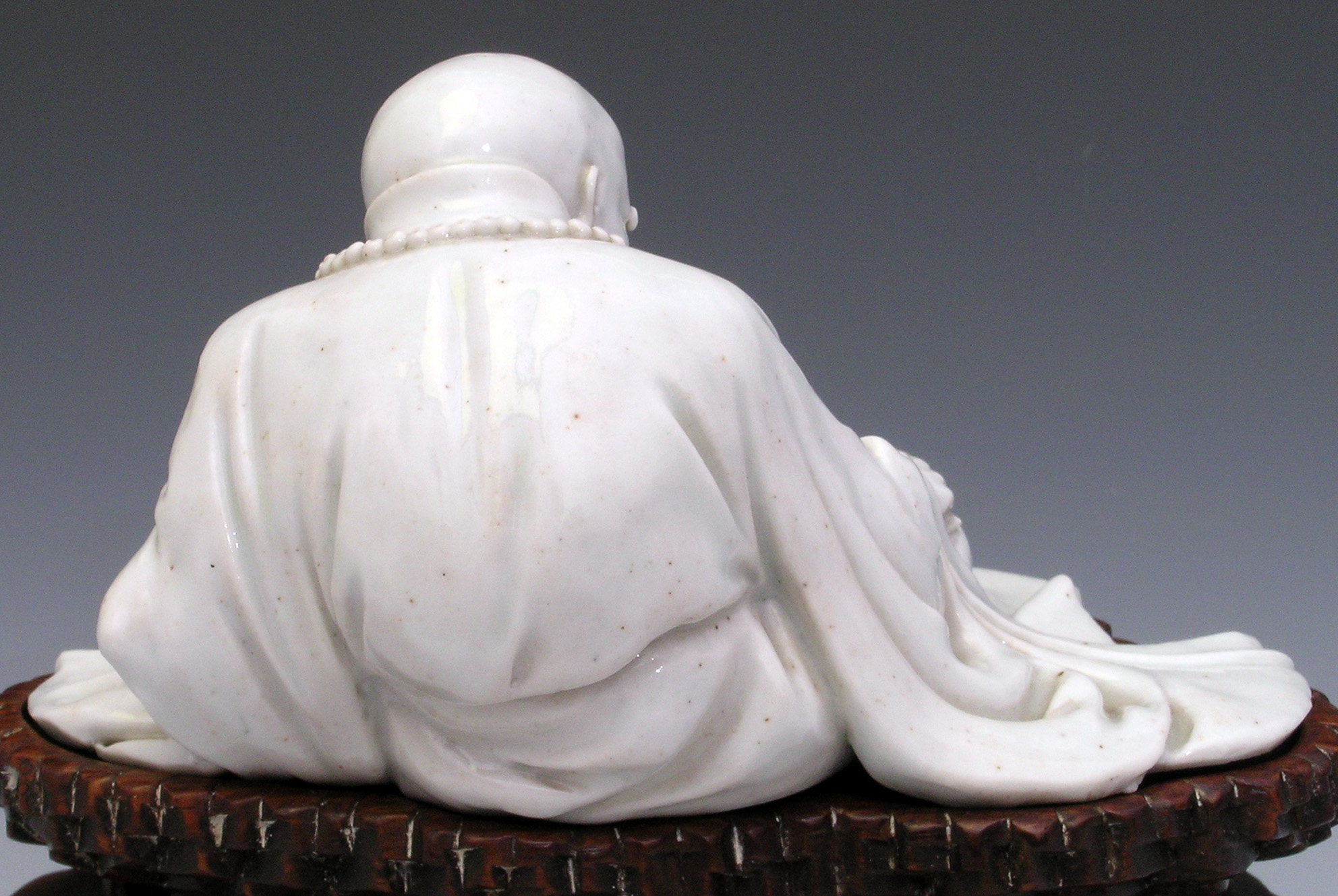 Arhat Reading Sutra in white clay and white glaze