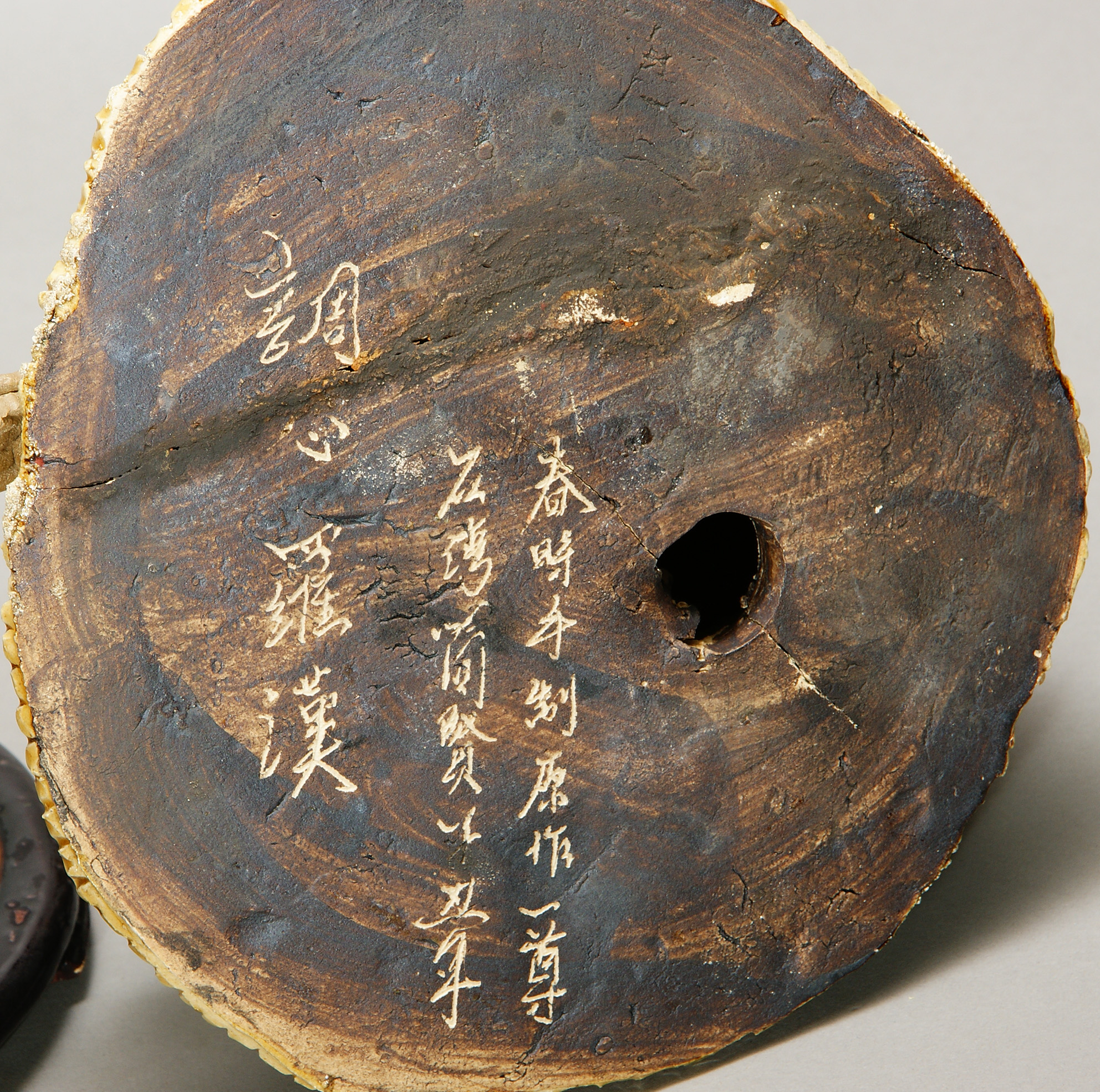 調心羅漢 1985 簡賢原作 Arhat seeking enlightened mind 1985 Original work with incised mark by Jian Zian Including original pottery stand W 18.2 cm (including stand)