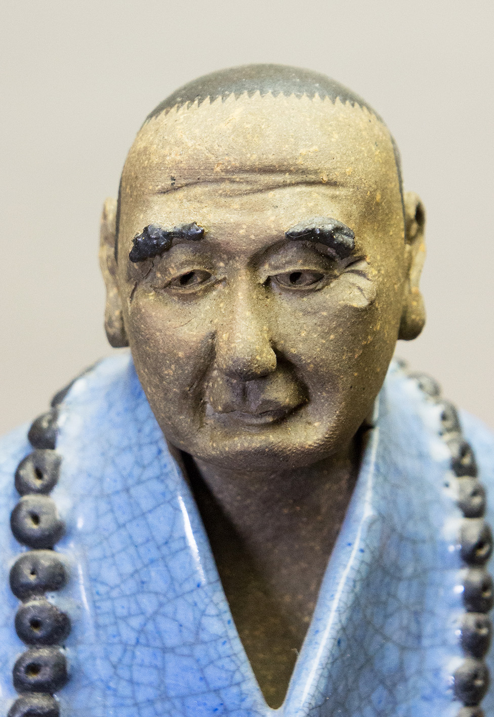 Old Man Holding a Whisk in Light Blue Enamel Glaze