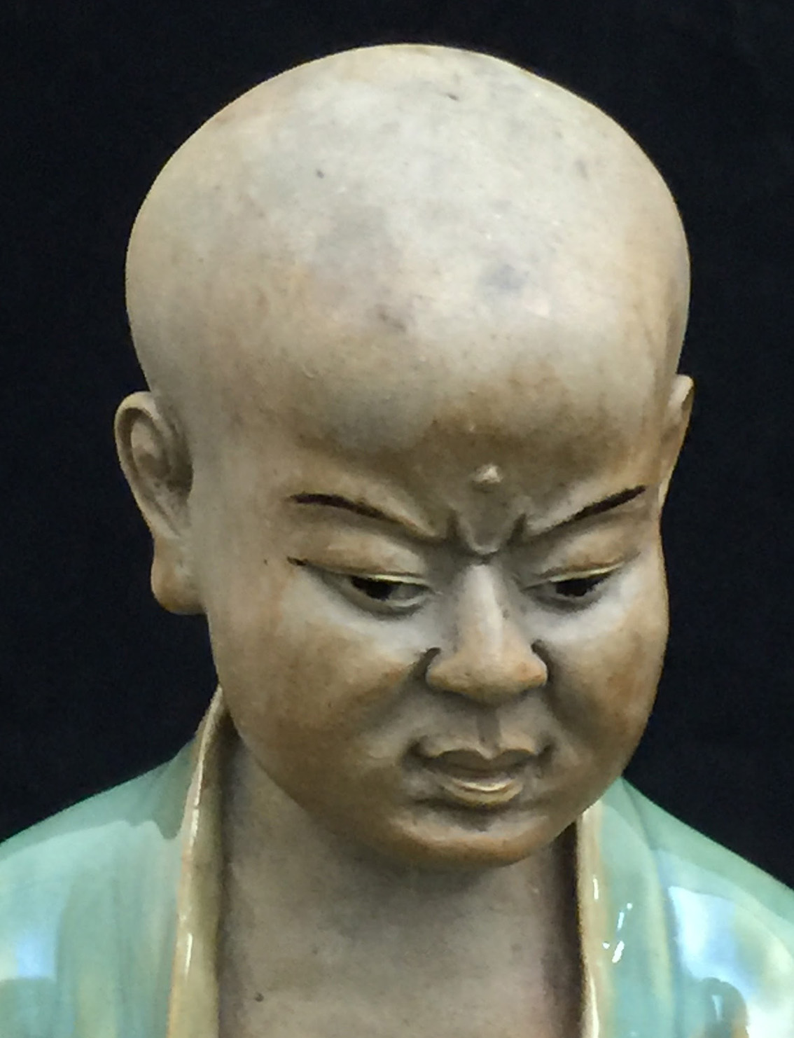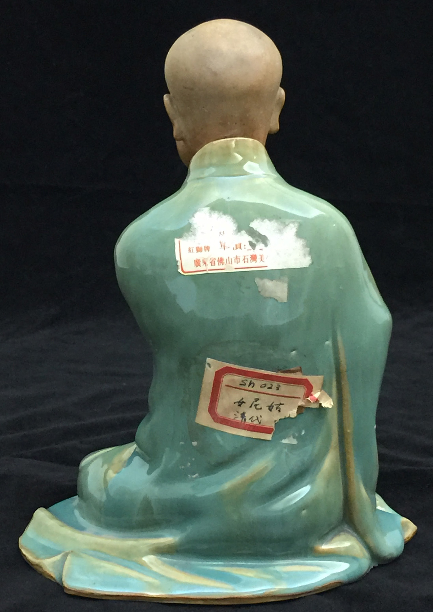 此作被認定為霍勝臨摹陳渭岩原作女尼, 照片見於《石灣藝術陶器》; 《中國石灣窯》#182 .