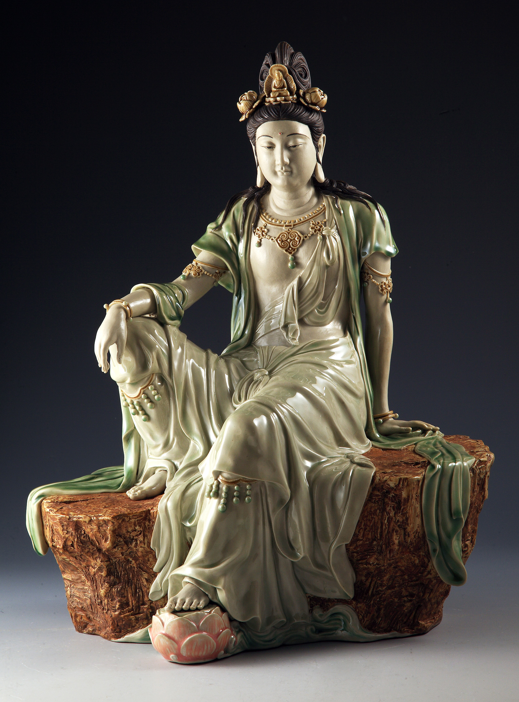 "Avalokitesvara" was a work produced at the peak of Liao Hongbiao's creativity. In order to show how responsible he was to the collectors, the mould was smashed after a limited edition of works made with extra care had been produced so that the issue of intellectual property was taken into consideration and the quality of the work could be guaranteed. As the original work had been damaged to such an extent that it could never be recovered, Liao Hongbiao produced the original work of "Guanyin".