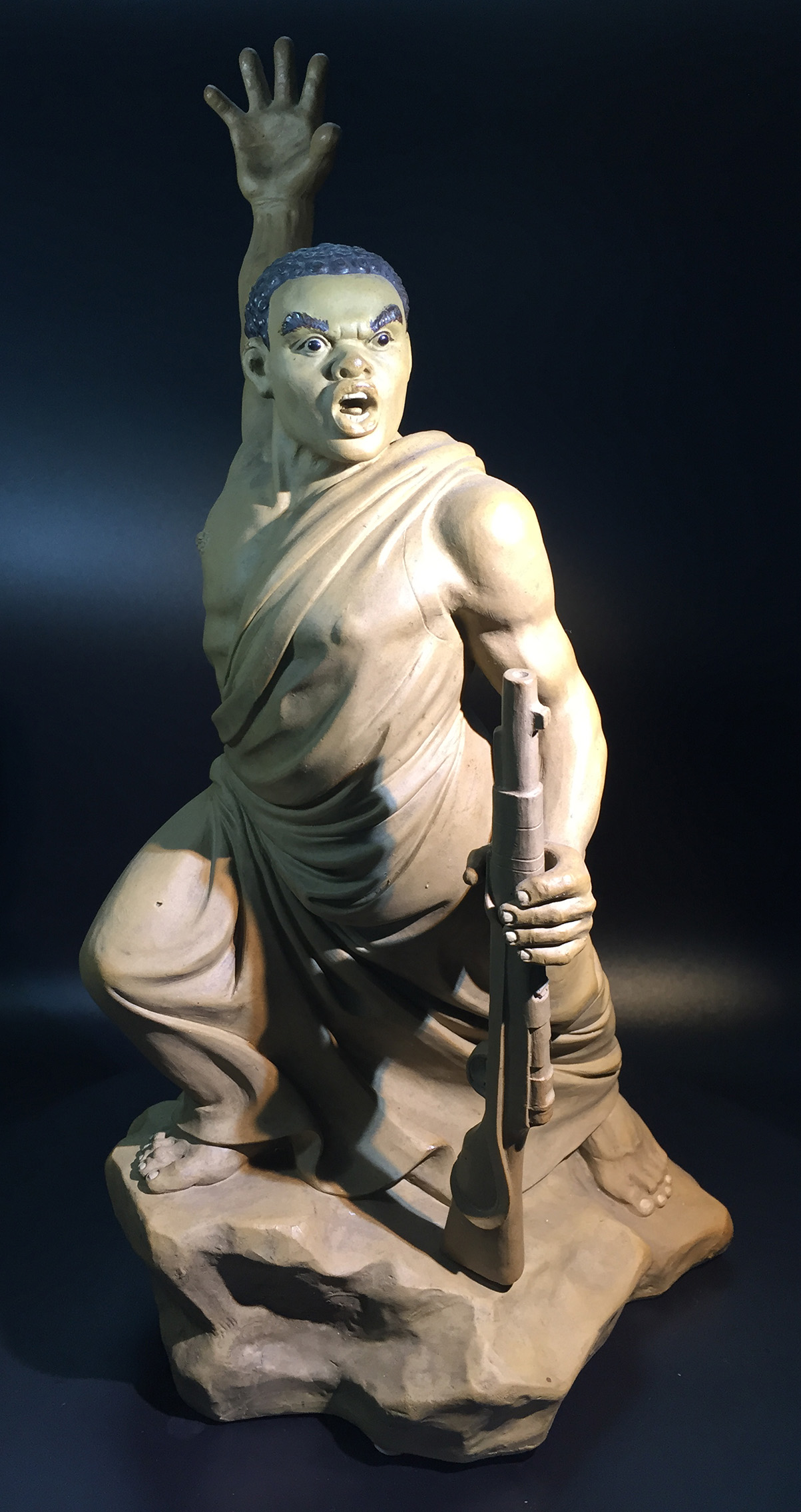 胎色起來 劉澤棉于1963年創作精品 無款,劉澤棉大師鑒定並簽署 高37 cm,寬19.5 cm,厚15 cm Arise 1963 No mark Confirmed by Liu Zemian. 起來不願做奴隸的人們